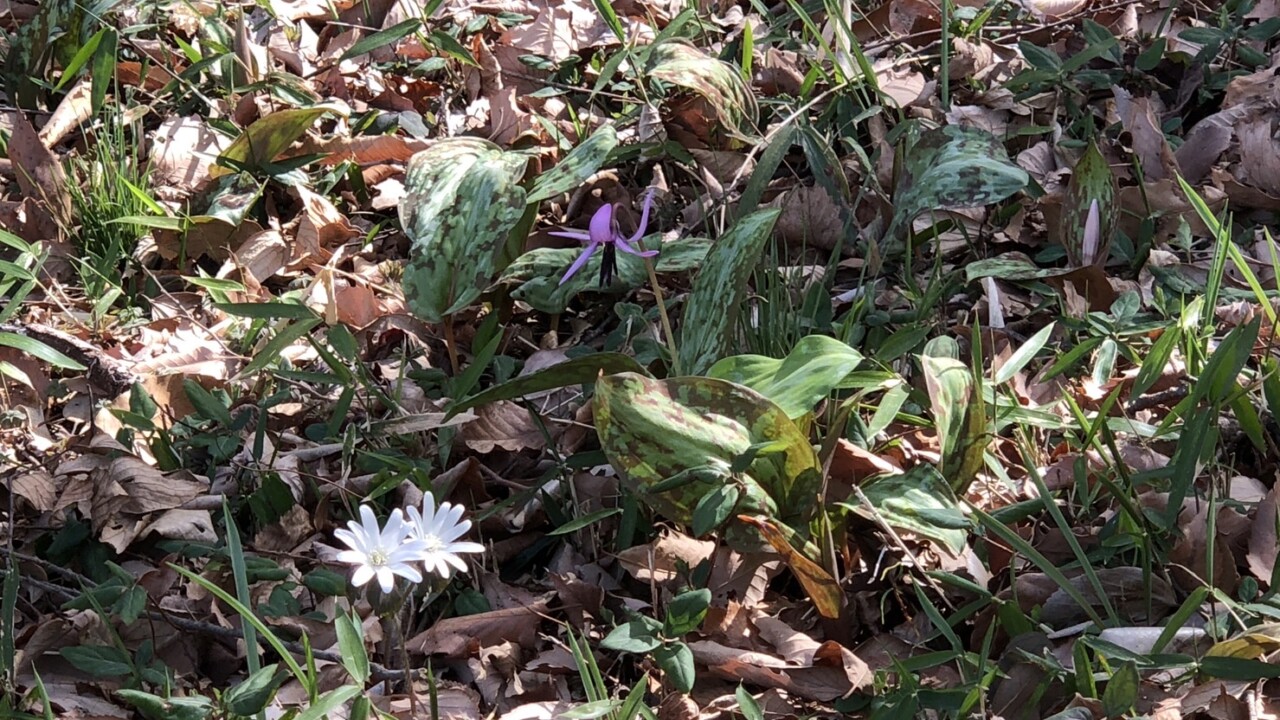 春を思わせ気温もあがる陽気。本日のトレーニングは、八王子山公園より唐沢山を目指す。 勾配のきつい山道を、上り下りを繰り返し見晴らしの良いベンチで小休止、少し汗ばんだ体にあたる風もさわやか、木々の間から刺すこぼれ日に励まされ、唐沢山分岐点まで来た。 ここで、唐沢山を登らず下山する事とした。 たぶん気持ちの中で、唐沢山は次回の楽しみにして置け・・・と。 また、次回の楽しみが増えた。 駐車場までもどり、丸山薬師のカタクリ群生とイチゲの花の開花状況を見学。 イチゲは見ごろ、カタクリは後、数日で見ごろを迎えそうです。 仕上げは”そば処 斜里太田店”そば大盛 おいなり付を食し、満腹なウォーキングトレーニングでありました。 |