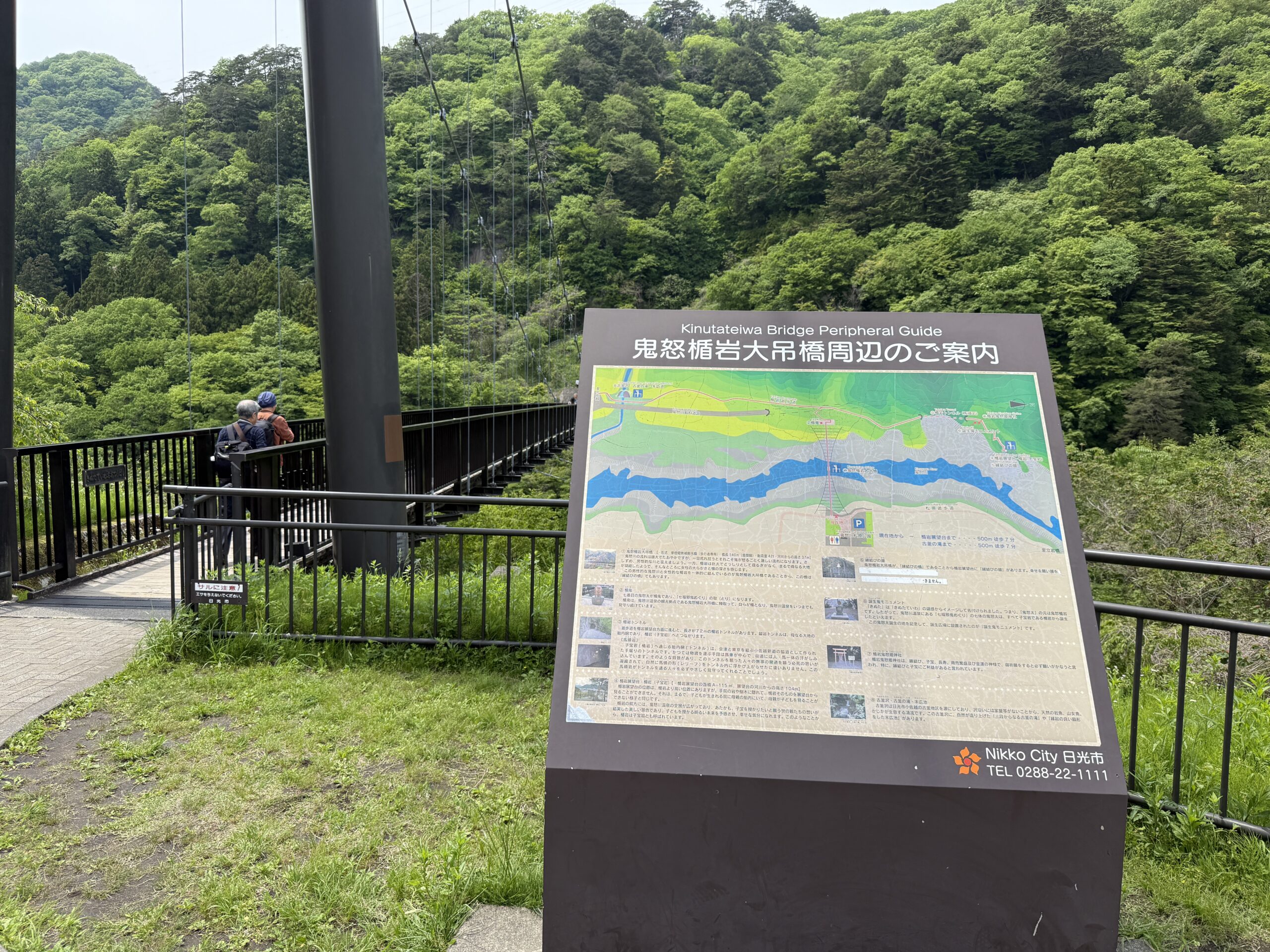 鬼怒川温泉駅 > 鬼怒川・川治温泉観光情報センター(受付) > 立岩橋 > ふれあい橋 > くろがね橋 > 滝見橋 > 鬼怒川公園 > 鬼怒岩橋 > 大滝河川遊歩道 > 鬼怒川温泉オートキャンプ場 > 鬼怒岩橋 > 鬼怒楯岩大吊橋 > 遊ingPLAZA > 鬼怒川・川治温泉観光情報センター(ゴール) > 鬼怒川温泉駅